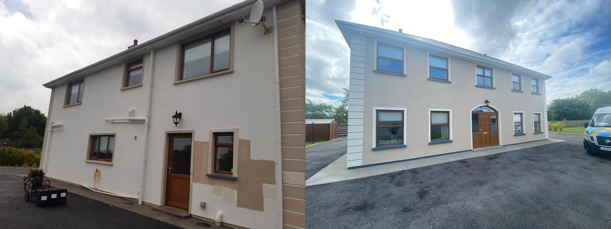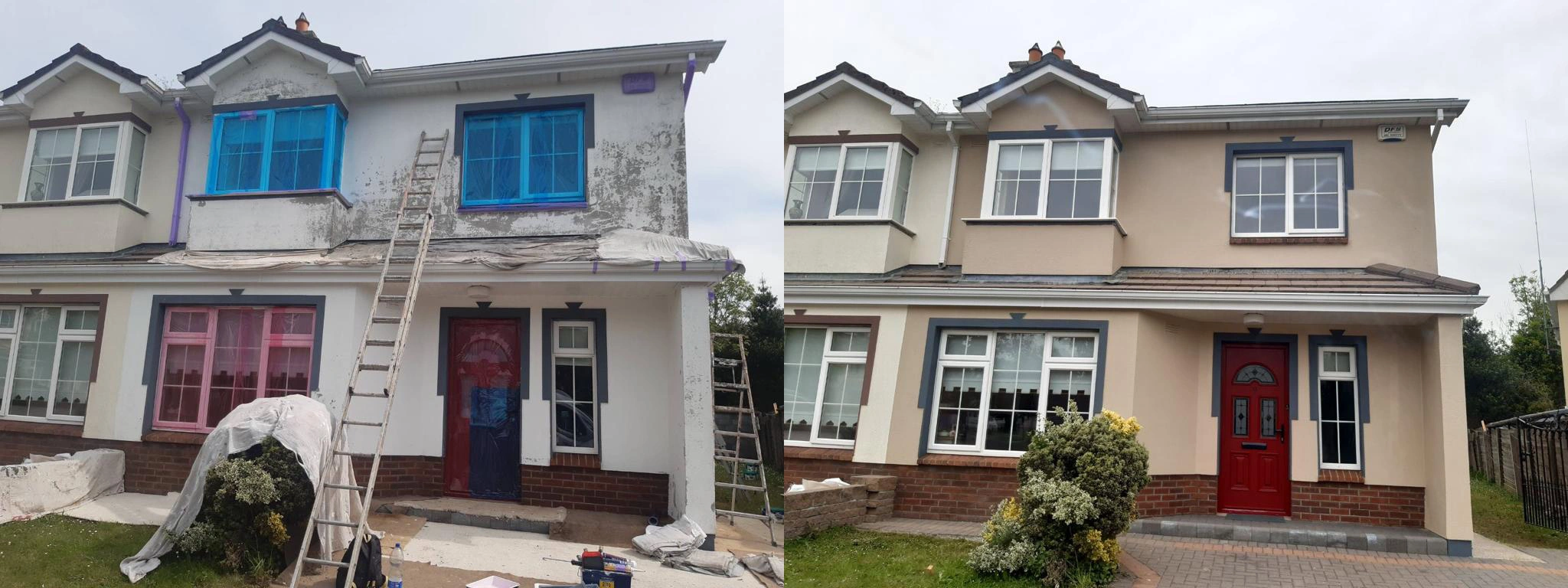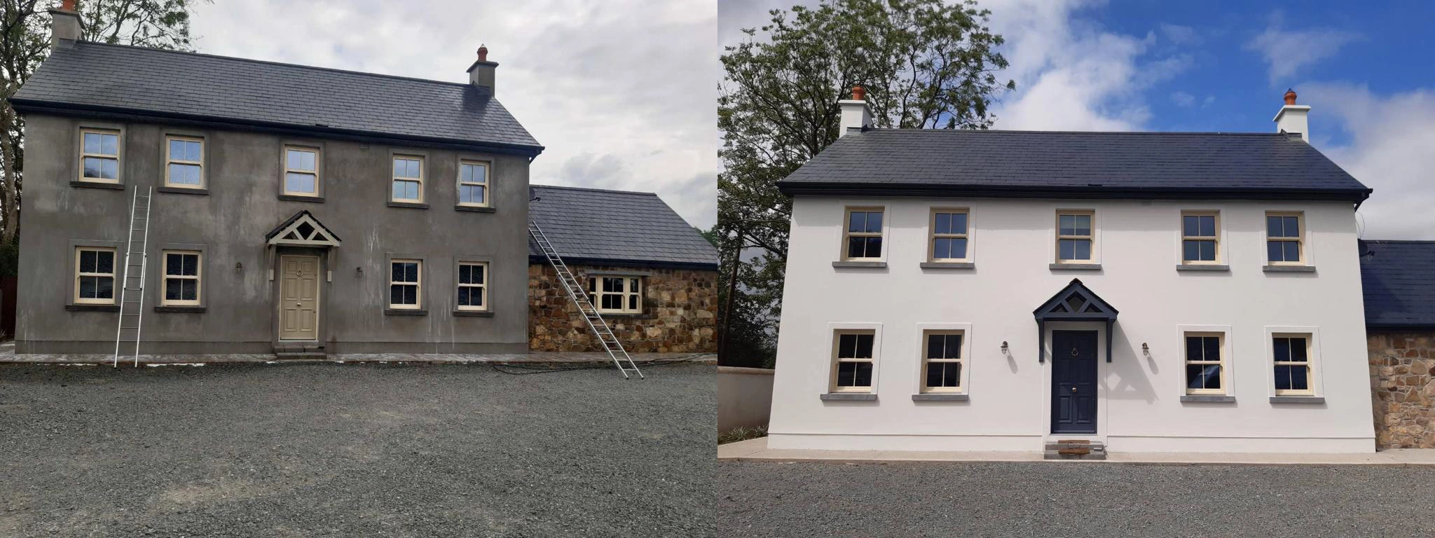 After all these procedures are looked after only then will we begin to start painting which in this case will take 3 coats minimum as the house is raw we also will use stabiliser on all window sills as they are most vulnerable to weathering.After a exterior project like this is finished we guarantee you a sharp, estetic and long-lasting effect which will bring a smile on your face when you look at the house of your dreams.