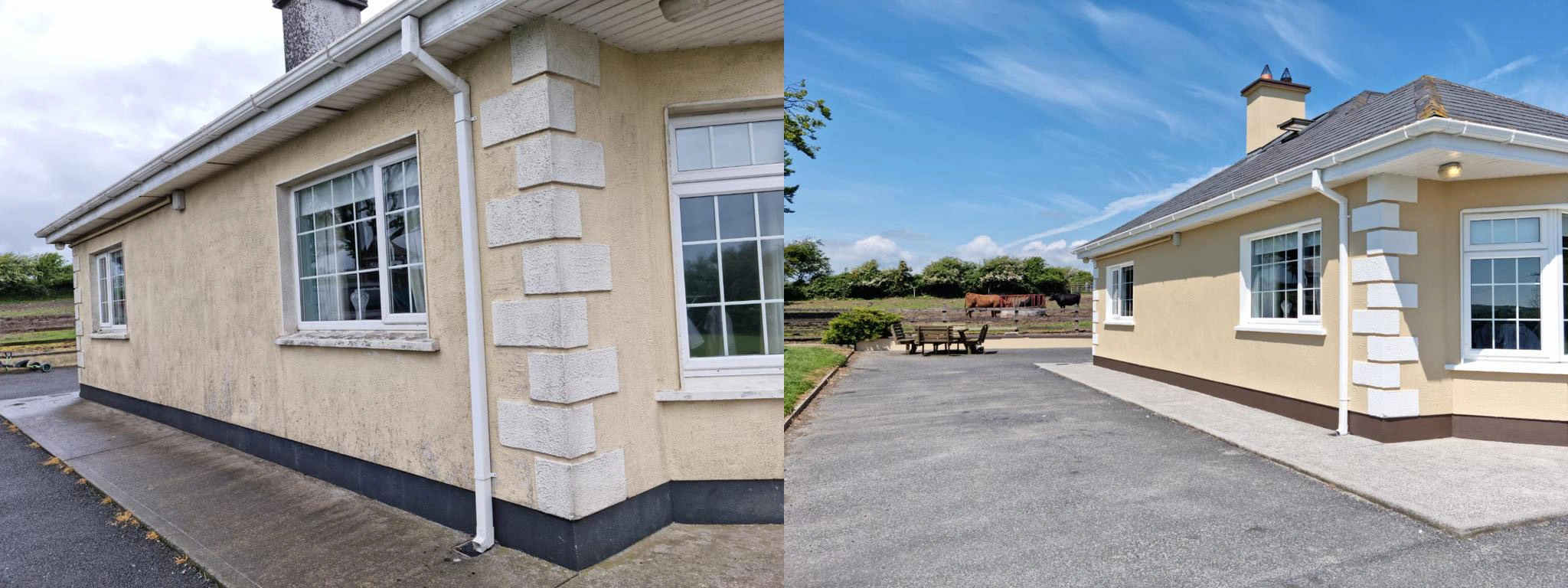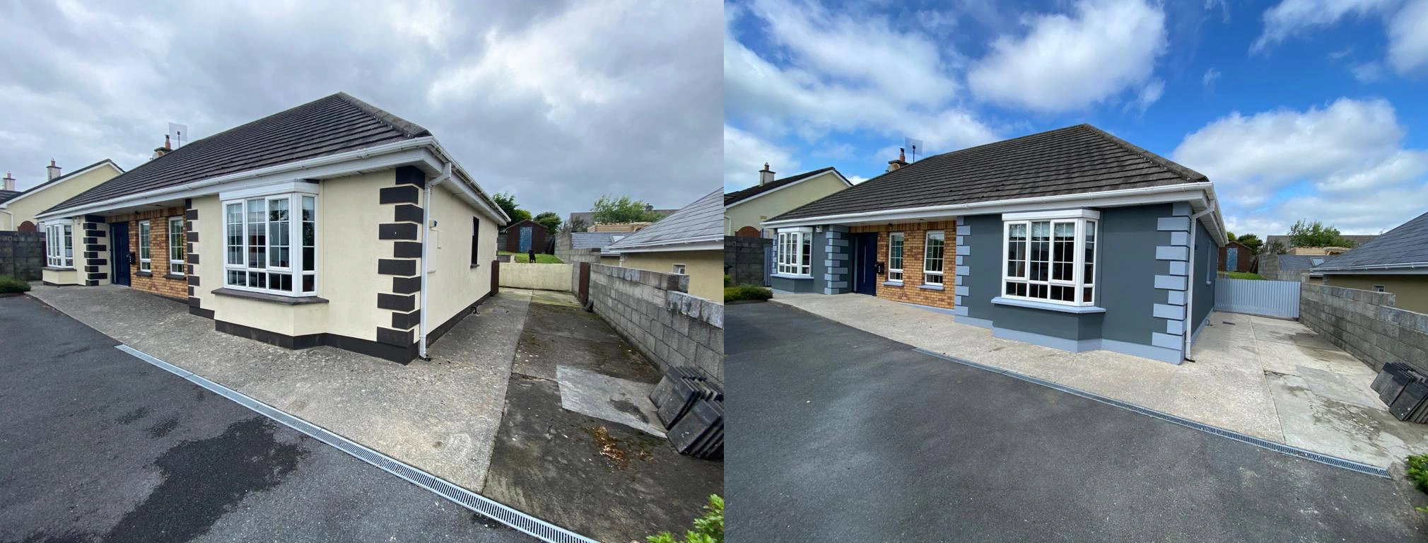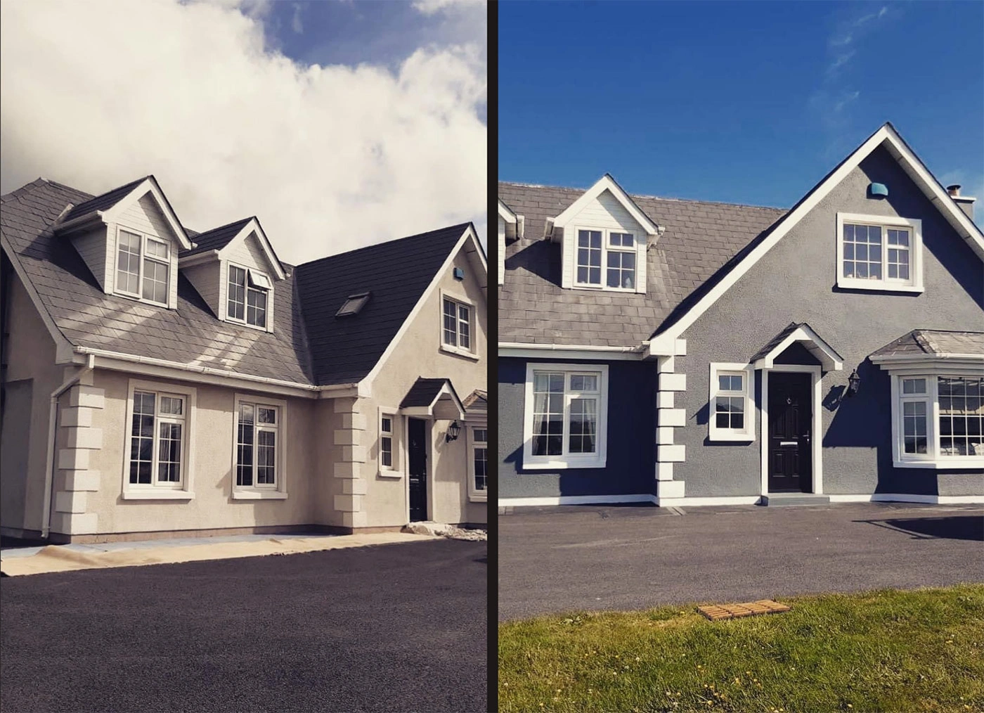 After all these procedures are looked after only then will we begin to start painting which in this case will take 3 coats minimum as the house is raw we also will use stabiliser on all window sills as they are most vulnerable to weathering.After a exterior project like this is finished we guarantee you a sharp, estetic and long-lasting effect which will bring a smile on your face when you look at the house of your dreams.