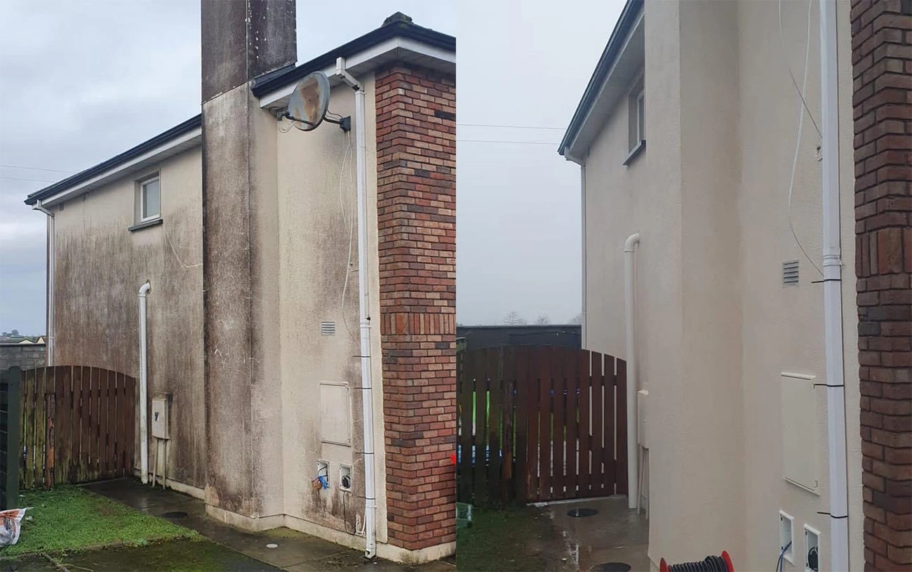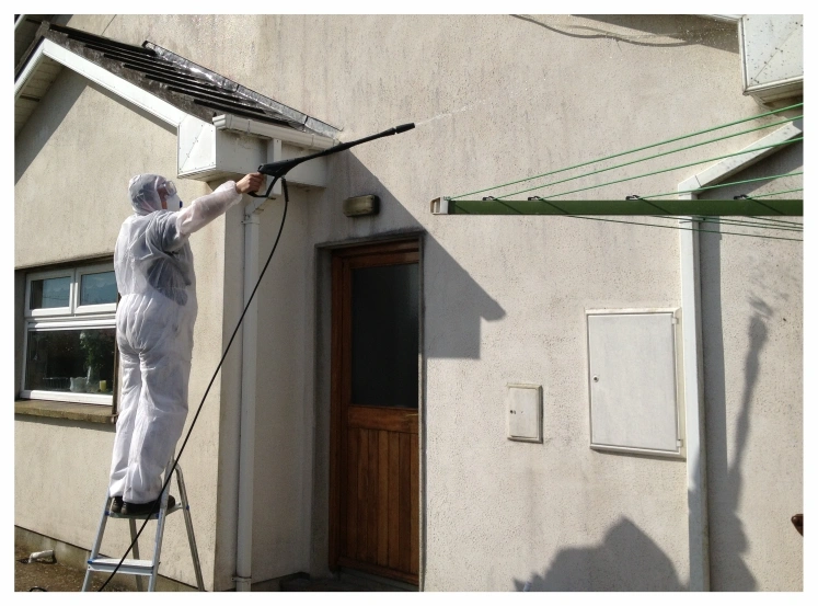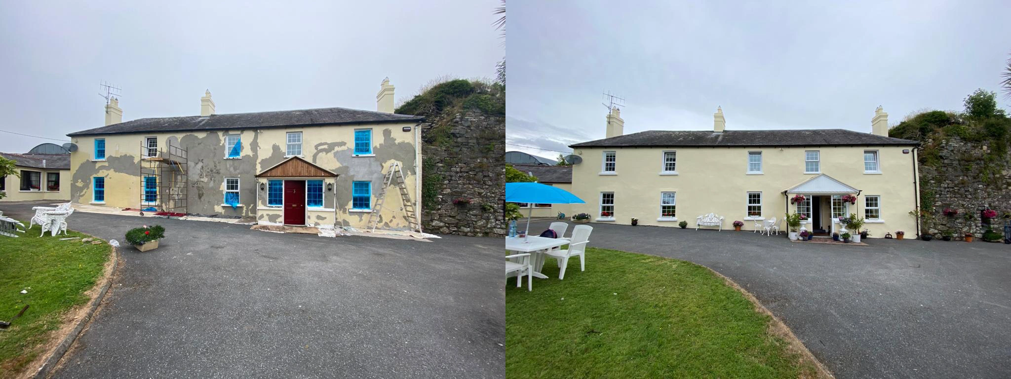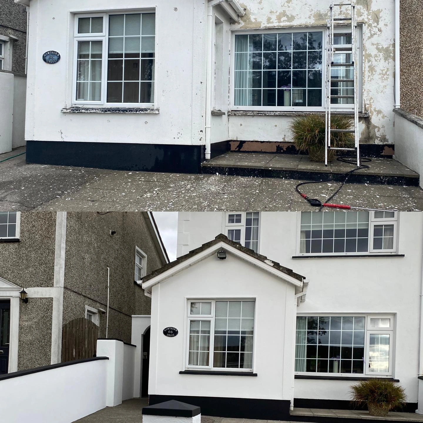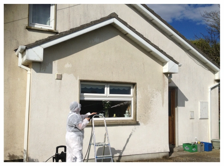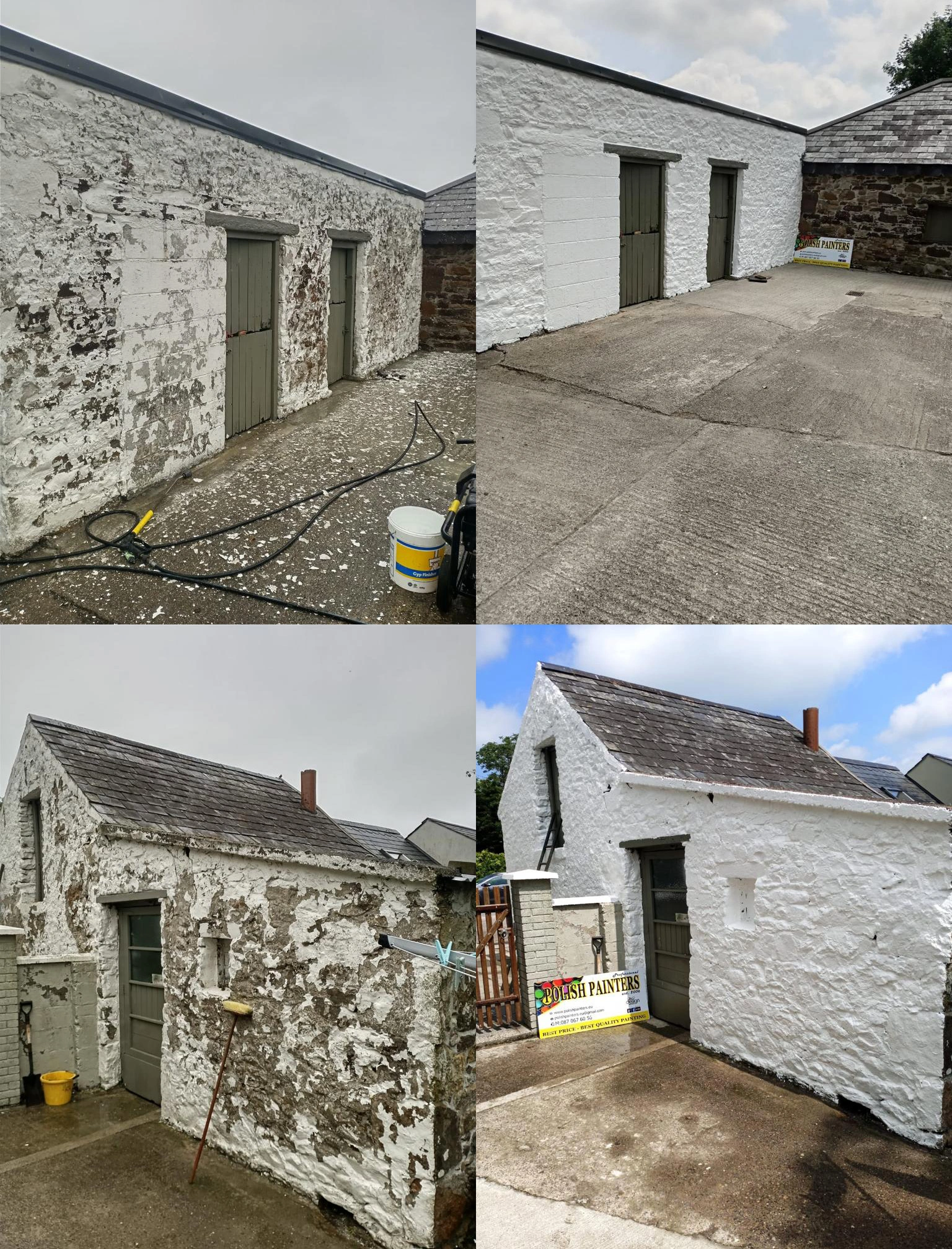 This is one of our latest exterior projects finished last year. As seen from the pictures the household has been exposed to weathering for many years, this has brought it to be overgrown with algae in form of red and green also spider webs and other forms of dirt you may notice in person. We in polish painters know the first step for a house in this shape is to perform a soft wash.(why not power wash? because the house is raw and power washing could potentially damage the external plaster power wash should only be used for driveways and footpaths or in some cases for old homes with lots of loose paint in preparation before painting in exterior project).